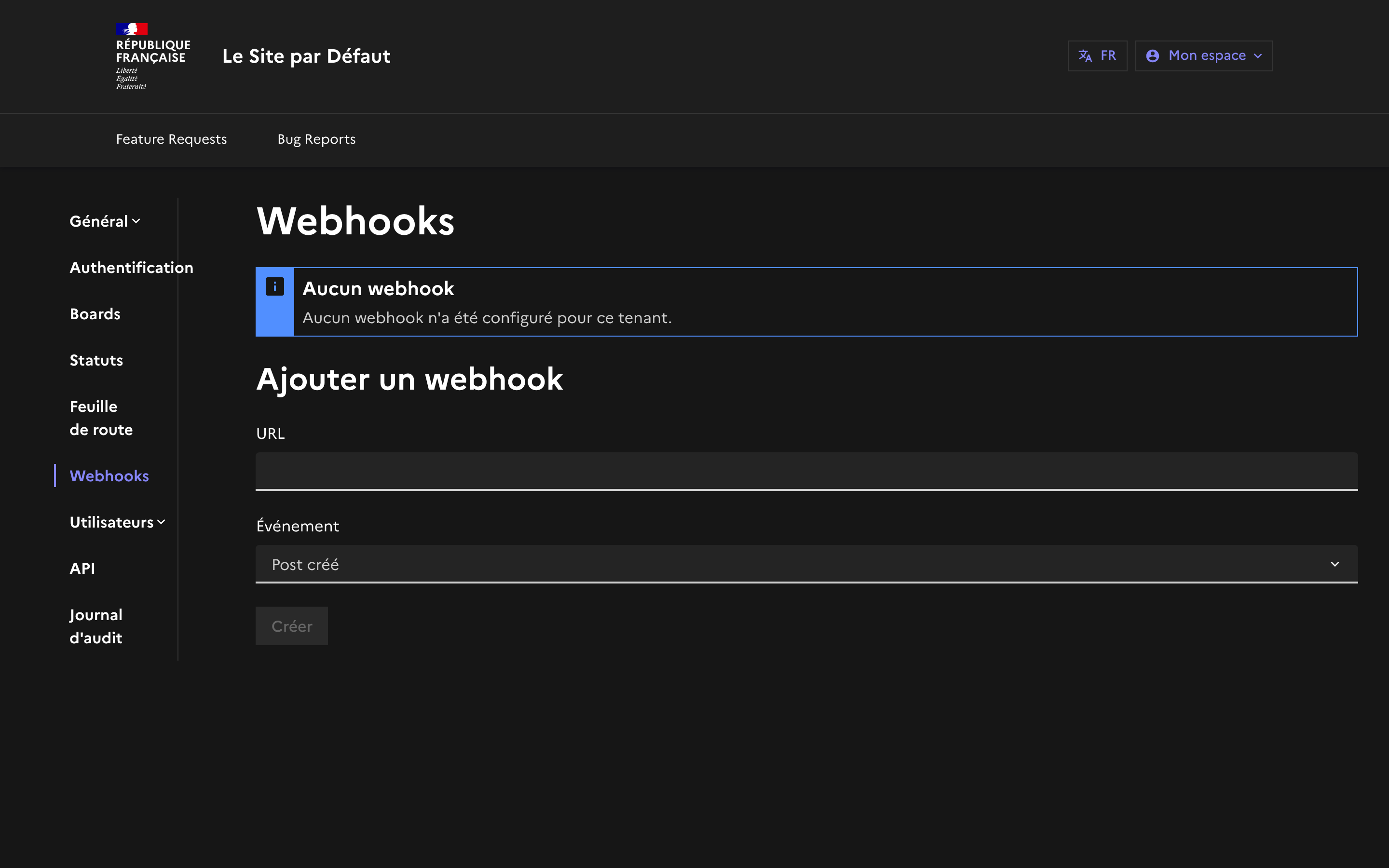 Les webhooks permettront d'envoyer des requêtes HTTP automatiques vers une URL externe lorsqu'un événement se produit sur votre espace. Ce sera utile pour intégrer Roadmaps Faciles avec d'autres outils (Slack, Mattermost, outils internes, etc.).